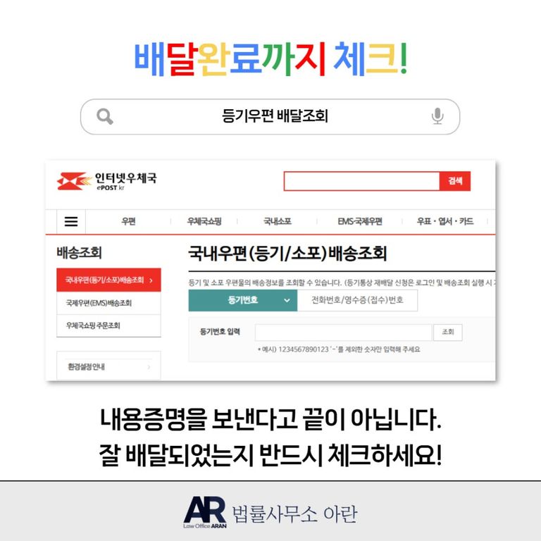 내용증명을 발송하실 때에 우체국에서 미리 배달증명을 함께 신청하셔도 좋고, 인터넷 우체국을 통해 등기우편 조회를 한 내역을 캡처해두셔도 좋습니다.