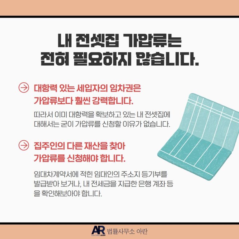 앞서 설명드린 것과 같이 내 전셋집에 대한 가압류는 필요하지 않습니다.