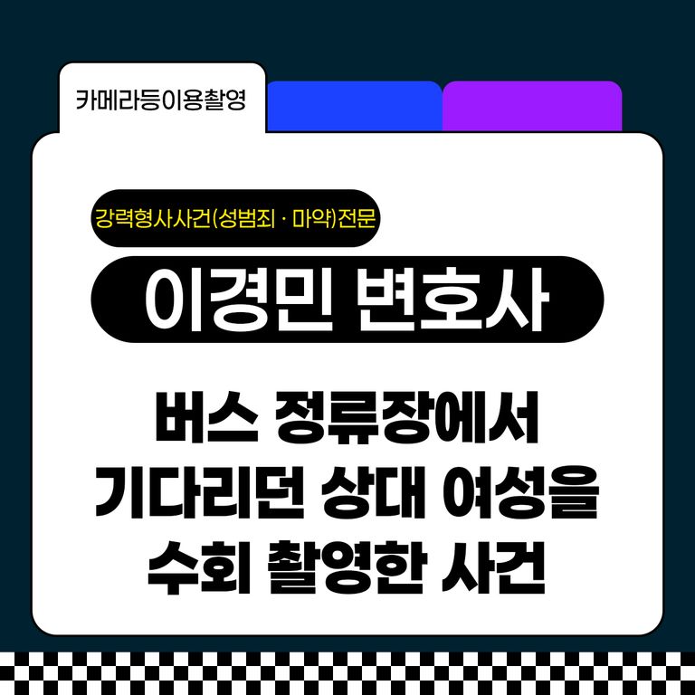 의뢰인은 버스 정류장에서 대기 중인 불상의 여성을 수차례 촬영하였다는 신고를 받고, 카메라등이용촬영죄 혐의로 입건되어 조사를 앞두고 있었습니다. 신고자의 진술과 현장에서의 상황으로 인해, 의뢰인은 촬영물의 성격에 따라 혐의 인정 여부가 갈릴 수 있는 중대한 상황에 놓이게 되었습니다.