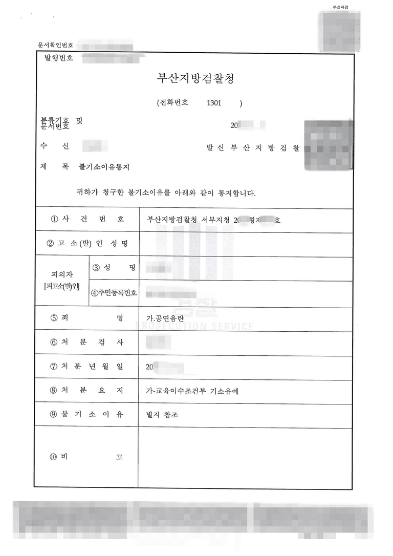 저희 법률사무소 제일로의 대표 변호사 조력 덕분에, 의뢰인은 형사 처벌의 위험을 완전히 벗어날 수 있었습니다. 검찰은 의뢰인의 진지한 반성과 재범 가능성이 낮다는 점을 인정하여, ‘교육이수조건부 기소유예’ 처분을 결정했습니다.