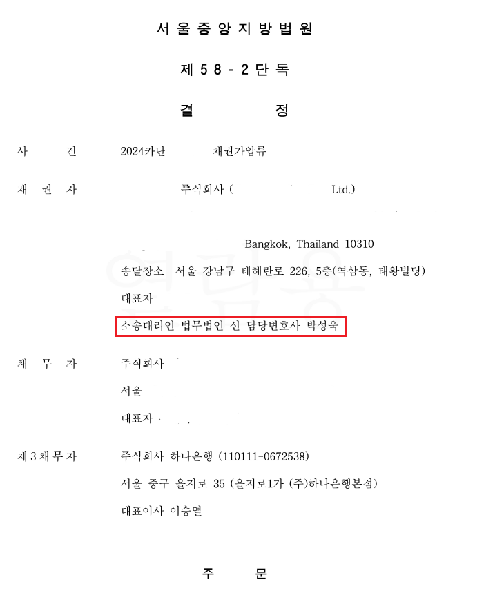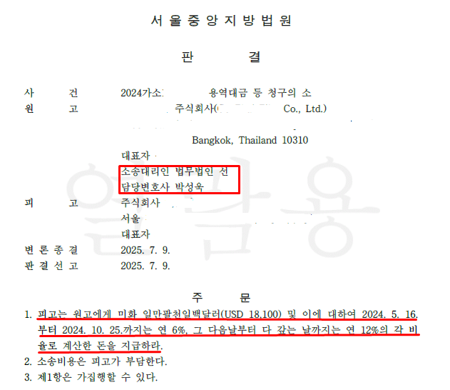 의뢰인이 한국 법인으로부터