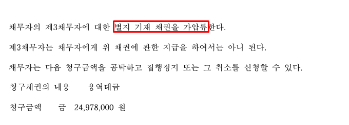 은행 계좌에 대한 '가압류'를 신청했습니다