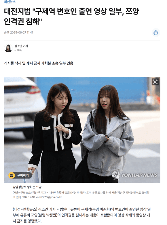 [출처: 연합뉴스. 김태연 대표 변호사님(쯔양 대리)]
