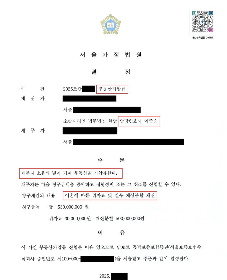 결국 재판부는 이준승 변호사의 주장을 받아들여 부동산가압류 인용결정을 하였습니다.