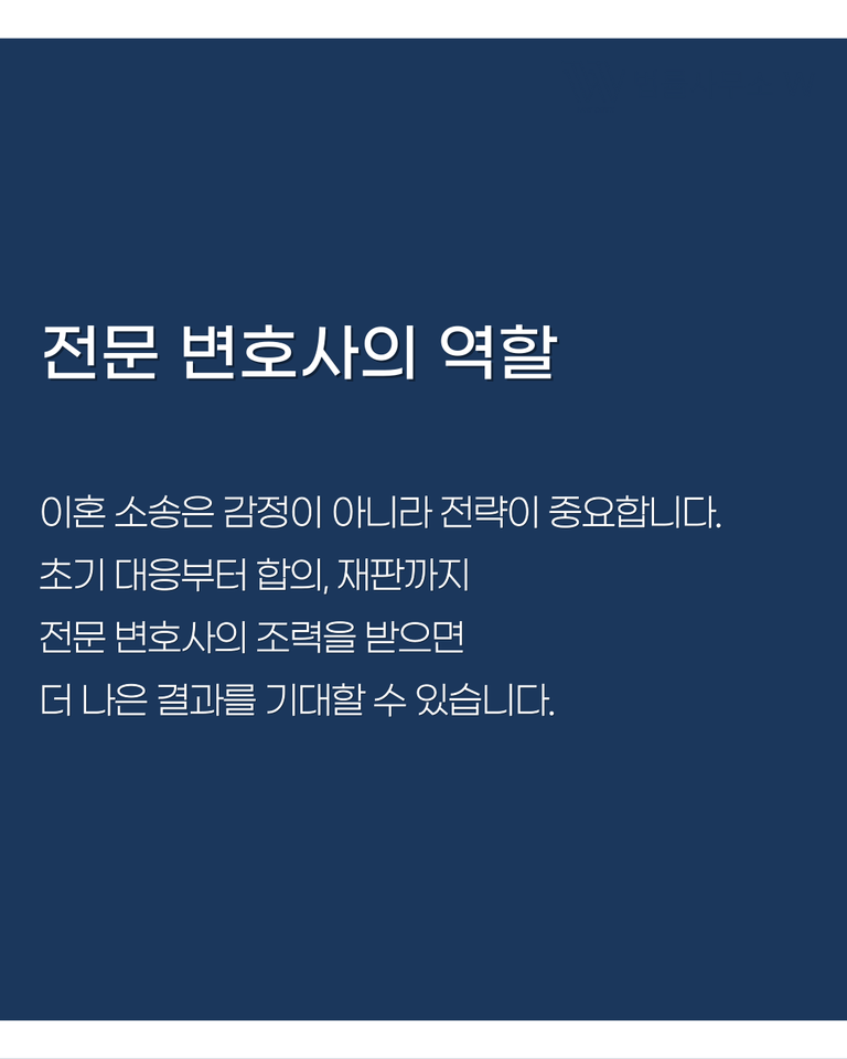 이 사건처럼 변호사를 선임한 후 단기간에 합의하고 조정을 성립시킨 사례는, 전문가의 조언과 전략적인 대응이 얼마나 중요한지를 잘 보여줍니다. 이혼 소송을 준비 중이시라면 반드시 전문 변호사와 상의해 보시길 권해드립니다.