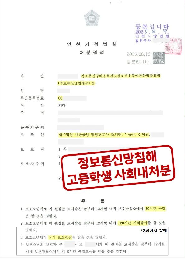 사이버보안의 진로를 꿈꾸고 있던 A군에게 이와 같은 전과는 너무나 치명적인 영향을 끼칠 것이었습니다. 해서 이동규 변호사는 경찰조사 단계에서부터 조력하여 형사사건이 아닌 전과가 발생하지 않는 소년부로 송치될 수 있도록 하였습니다.