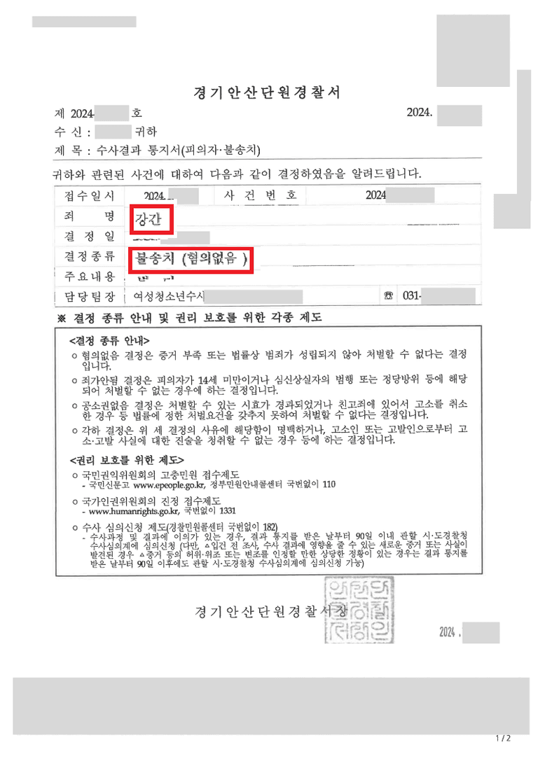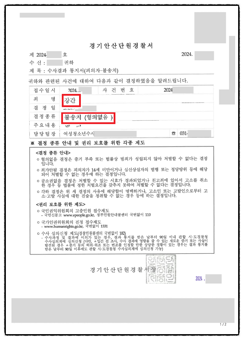 이번 포스팅에서는 강간 누명을 벗고 혐의없음(불송치) 결정을 받은 사건을 소개해드렸습니다.