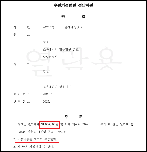 - 더불어 소송비용 전액도 피고가 부담
