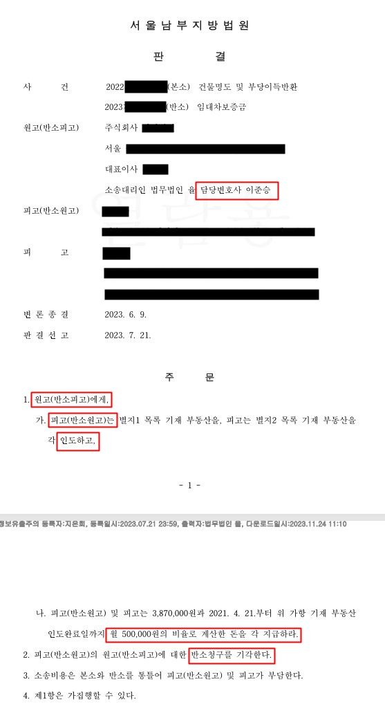 원고를 대리하여 피고를 상대로 건물명도 및 부당이득반환을 구했던 사건입니다.