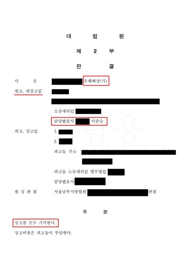 원고를 대리하여 매도인 담보책임을 구했던 부동산 및 민사법 전문 이준승변호사는