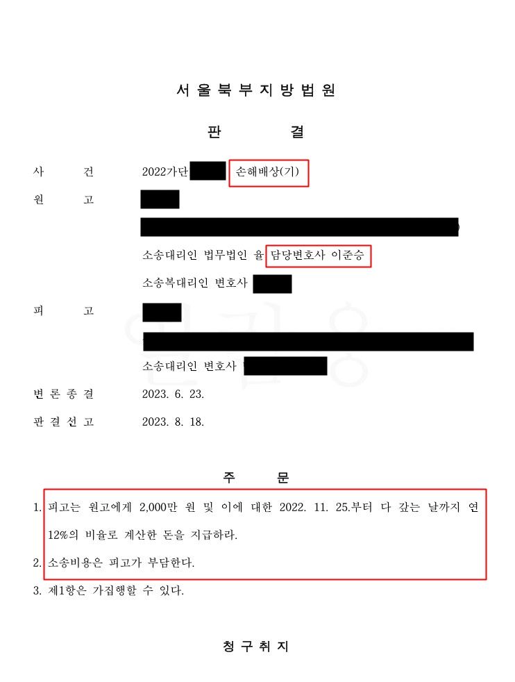 이에 법원은 원고의 주장을 받아들여 원고 청구를 인용하였습니다.