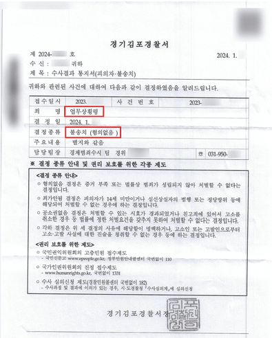 이상과 같은 변호 끝에 경찰은 의뢰인들의 업무상횡령 혐의에 대해 불송치 결정을 내려주셨습니다.