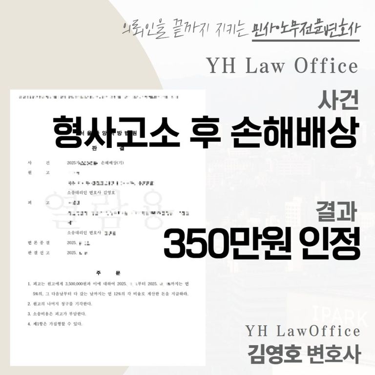결국 총 350만 원의 손해배상 인용 판결이 내려졌으며,