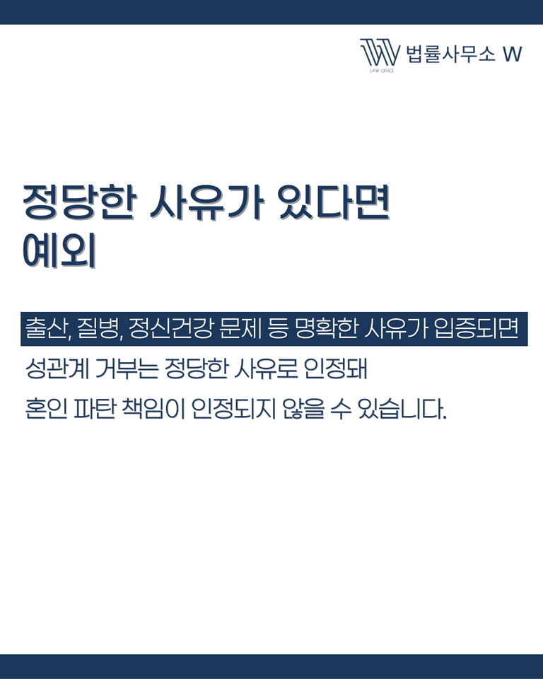 다만 성관계 거부가 다음과 같은 이유에서 비롯됐다면 정당성이 인정될 수 있습니다.
