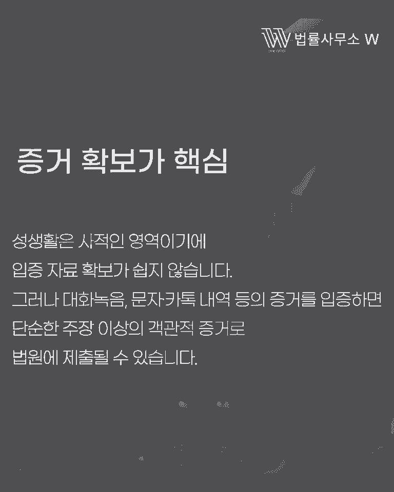 성관계 거부는 사적인 문제이므로 입증이 쉽지 않습니다. 그러나 다음과 같은 방법으로 증거 확보가 가능합니다.