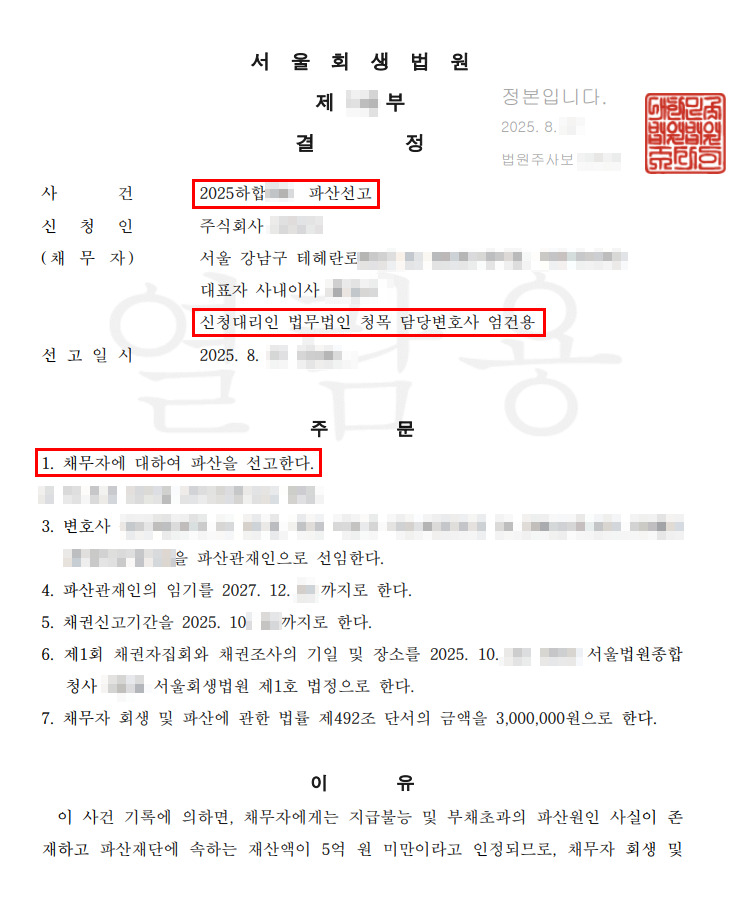 법인파산 성공 - 합리적인 수임료로 민형사 리스크까지 모두 해결