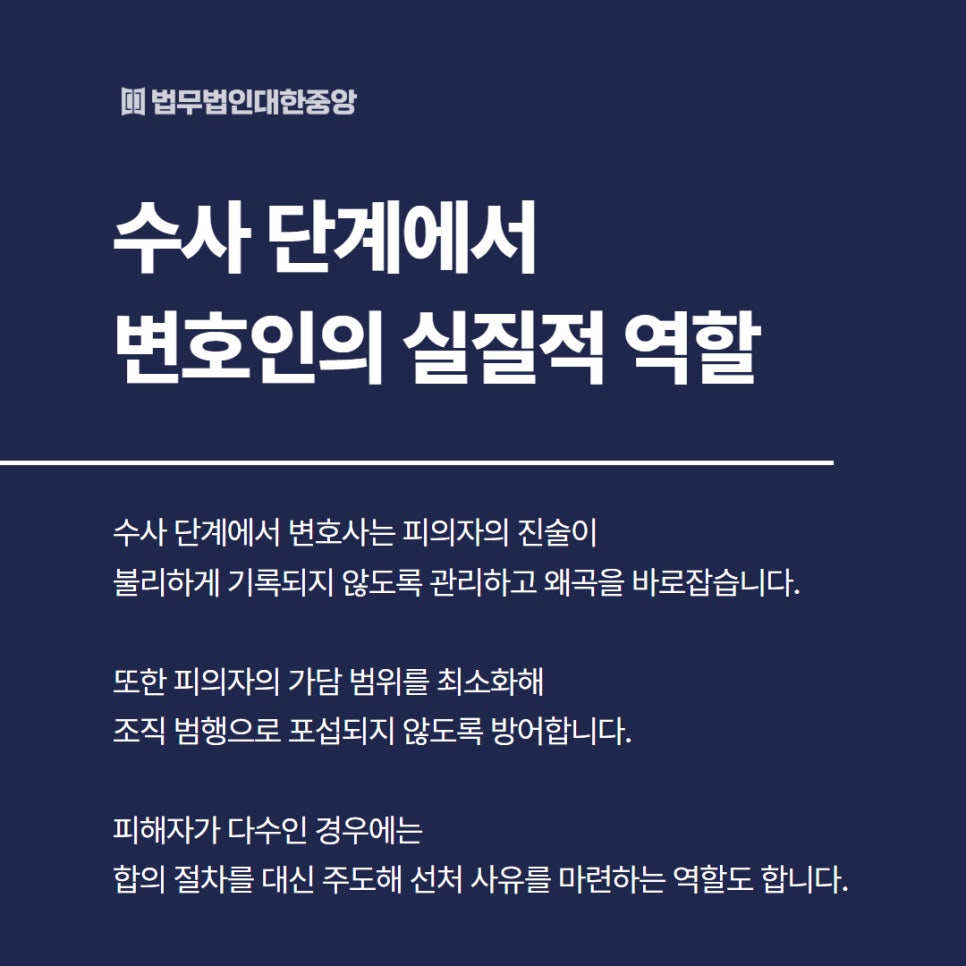 ➡️ 변호사는 피의자의 행위를 한정하고,