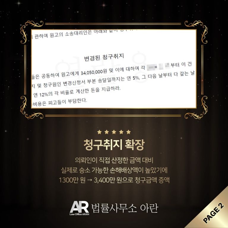 그런데 사건을 맡은 후 확인해보니, 의뢰인은 3,400만 원까지도 손해배상을 받을 수 있는 사건이었습니다.