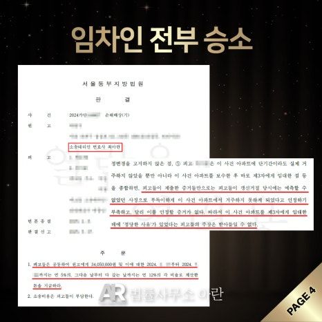 그 결과, 의뢰인은 청구금액 3,400만 원에 대해 전부 승소 판결을 받았습니다.