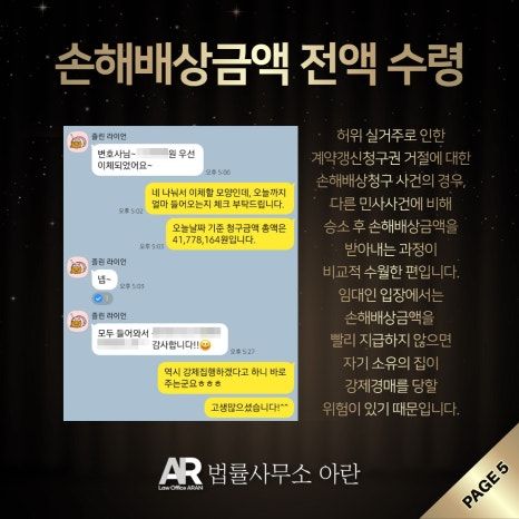 실제로 이 사건에서 임대인이 손해배상금액을 지급하지 않고 며칠간 시간을 끌자, 법률사무소 아란에서는 임대인측 변호사에게 연락하여 '3일 내로 지급하지 않으면 강제집행을 하겠다'라고 엄포를 놓았는데요.