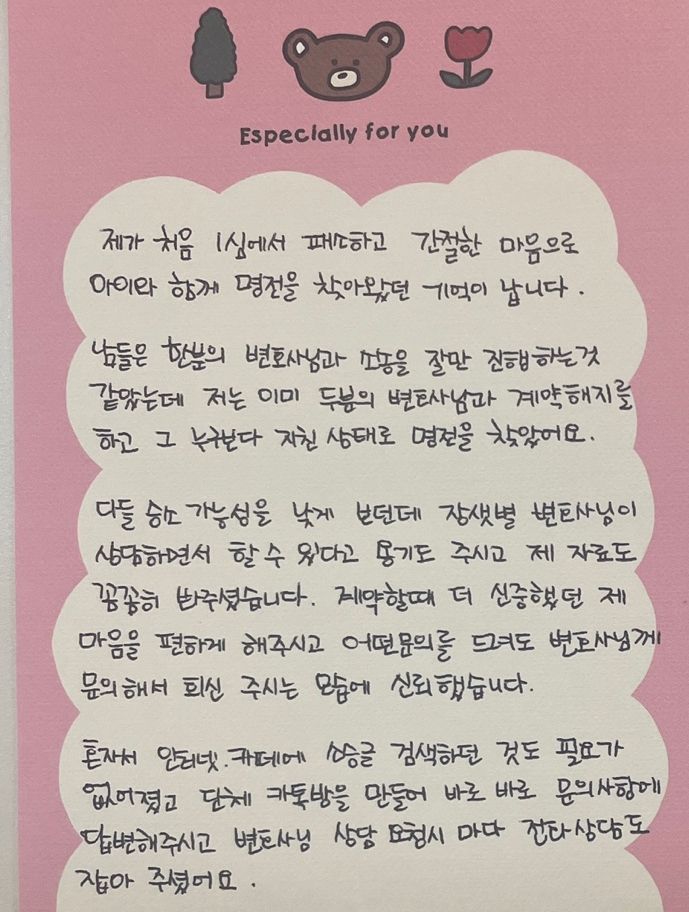 혼자서 인터넷, 카페에 소송 글 검색하던 것도 필요가 없어졌고,