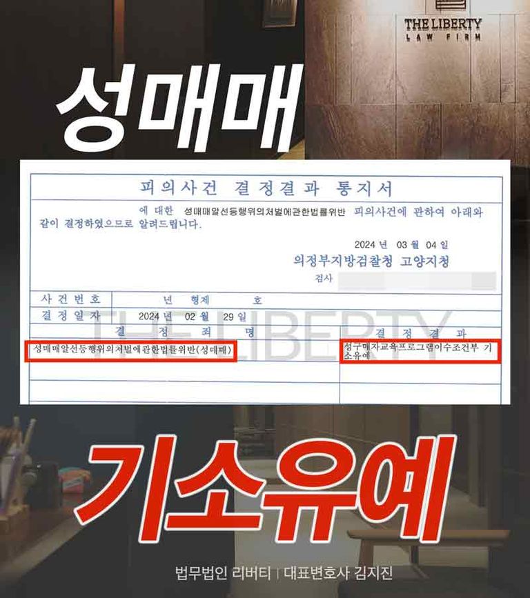 이는 검찰이 범죄 성립 가능성을 인정하면서도, 성매매 전문 변호사의 의견서를 통한 사건의 특수성과 정상참작 사유를 반영해 전과 기록 없이 사건을 종결한 것입니다.