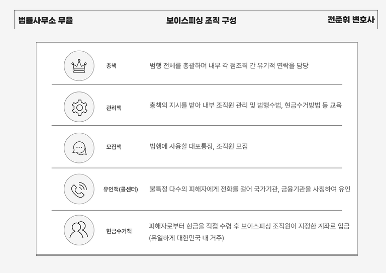 보이스피싱 범죄는 국내수사기관의 추적을 피하기 위해 주로 중국 기타 동남아 등에 거점을 두고 한국에 있는 불특정 다수의 피해자들을 상대로 검찰, 경찰, 금융기관 등을 사칭하고 기망하여 돈을 편취하는 범죄입니다. 그 수법이 날로 고도화되는 까닭에 새로운 피해가 끊임없이 발생하고 있으며, 정부에서도 그 심각성을 인식하고 최근 보이스피싱 범죄를 근절하겠다며 대대적인 대응을 선포한바 있습니다.