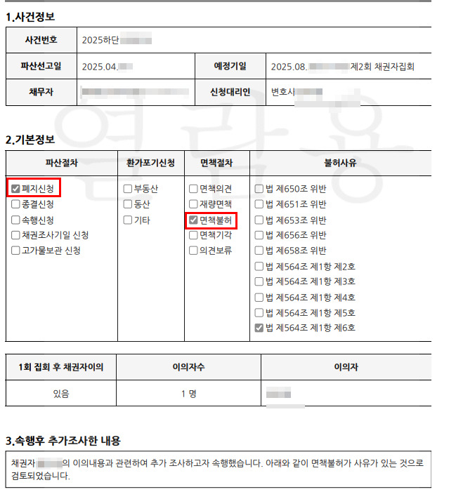 그러나 이미 형사 고소를 하였다가 무혐의 처분이 났으므로, 채무자의 면책을 저지하는 것은 어려운 상황이었다.