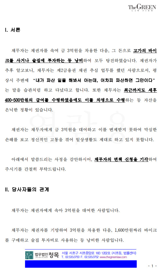 면책 저지 성공 - 3억원 채권의 회수 가능성을 남기다