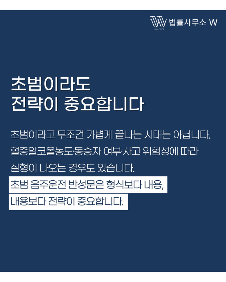 음주운전은 이미 벌어진 일이지만, 그에 대한 대응은 지금부터가 시작입니다. 초범이라도 결코 방심하지 말고, 전문 변호사와 함께 사건 초기부터 전략적으로 대응하시기 바랍니다.