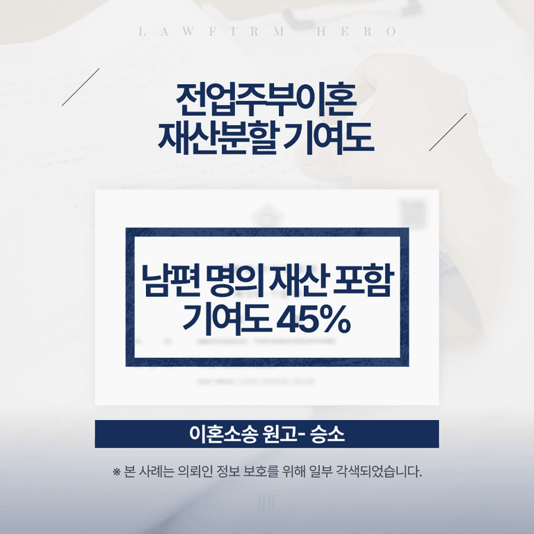 - 혼인기간 23년, 경제적 활동은 남편이 주도했지만 실질적 재산형성의 기반이 ‘의뢰인의 헌신 덕분’이었다는 점을 강조