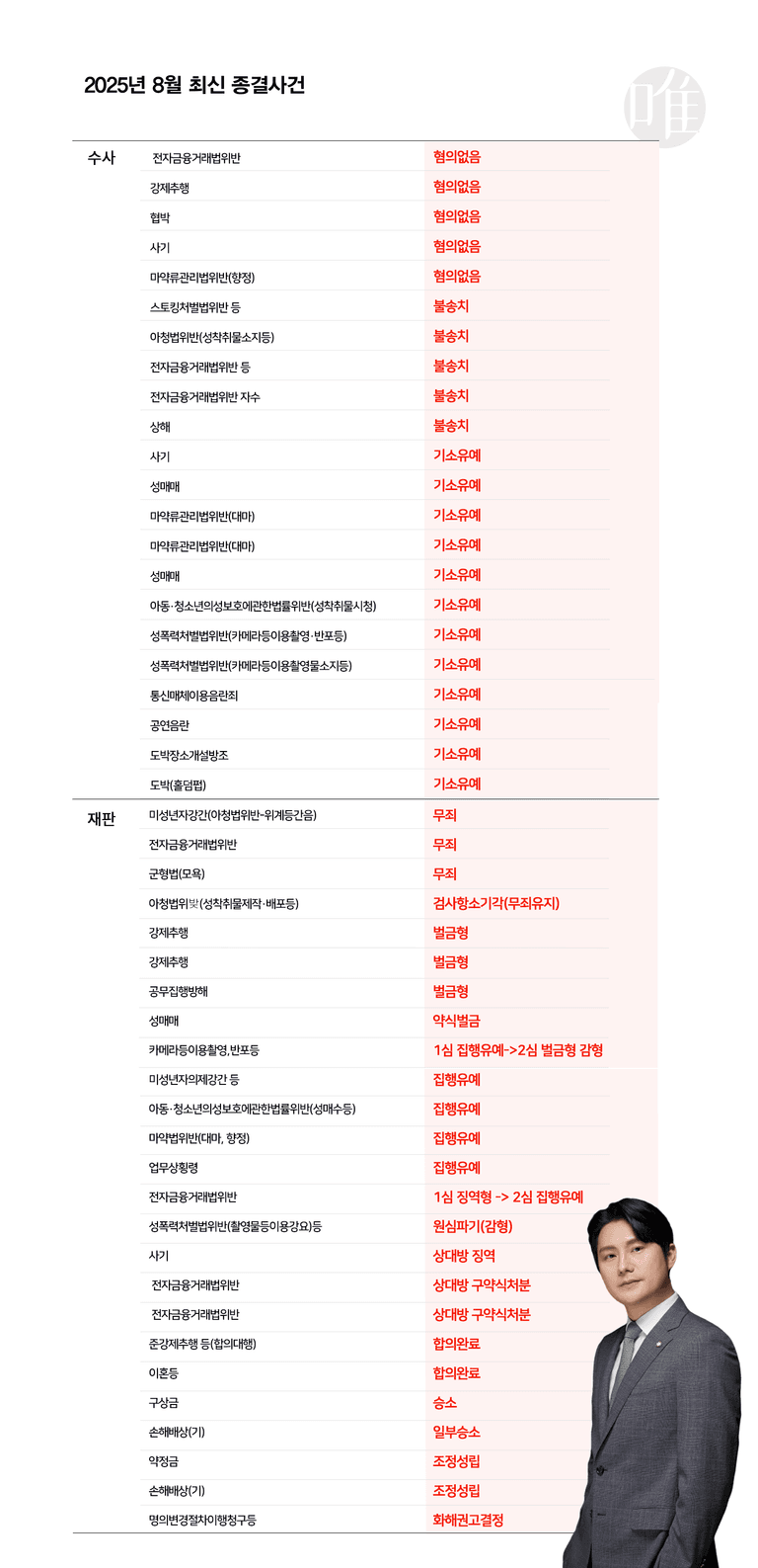 그만큼 긴장을 놓을 수 없었던 한 달이었고, 저희 법률사무소 유(唯)는 2025년 8월 한 달 동안 총 46건의 사건을 성공적으로 종결지었습니다.