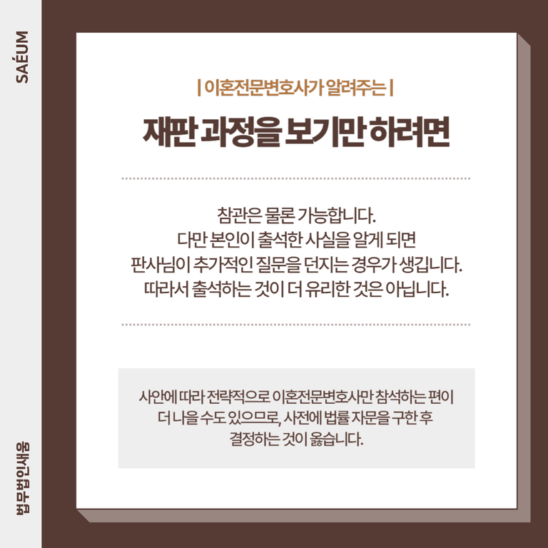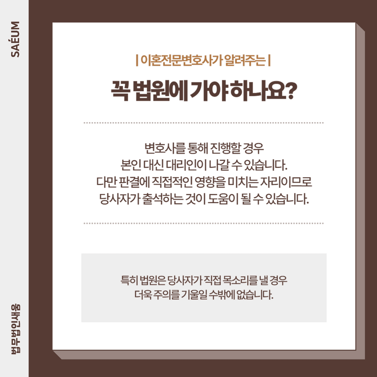 이혼 과정을 남들에게 알리는 것도 부끄러운데, 꼭 재판일에 직접 나가야 하나요?