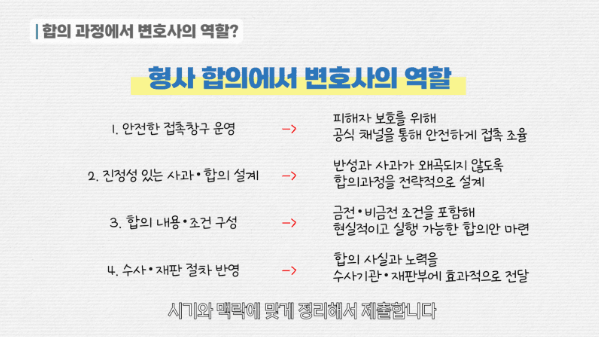 → 합의서, 의견서, 양형자료 등을 수사·재판 절차에 효과적으로 반영