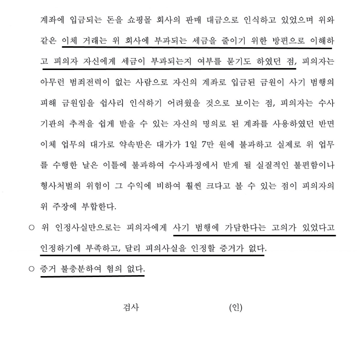 1) 의뢰인은 보이스피싱으로 인한 피해 금액인 것을 모르고 아르바이트를 하였을 뿐이라는 등의 유리한 사실 관게를 정리/주장하고