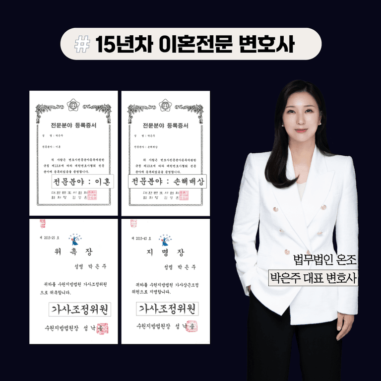 안녕하세요. 15년 차 이혼전문 박은주 변호사입니다.