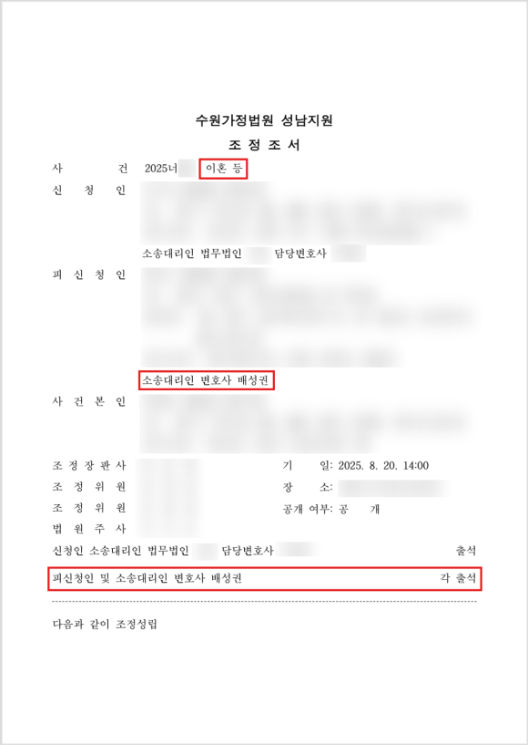 남성인 의뢰인께서는 이혼을 하게 된다면 상대방과 재산을 공평하게 나눌 마음이 있었는데, 상대방은 의뢰인에 대해 "가진 재산의 절반을 내놓으라"라는 식의 조정신청서를 접수하였습니다. 이에 의뢰인께서는 법률전문가의 조력을 받아 공평타당하게 재산분할을 하기 위해 저와 선임계약을 체결하였습니다.