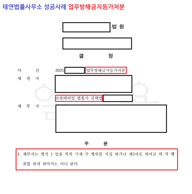 [태연법률사무소 업무방해금지가처분 성공사례, 출처: 태연법률사무소]