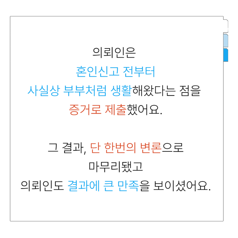 📍 단 1회의 변론만으로 인정한 사실혼 !