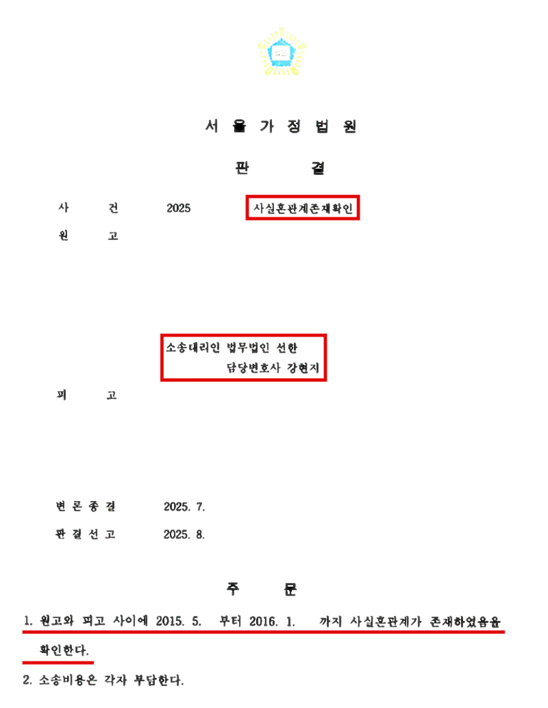 사실혼 관계 존재확인 사례를
