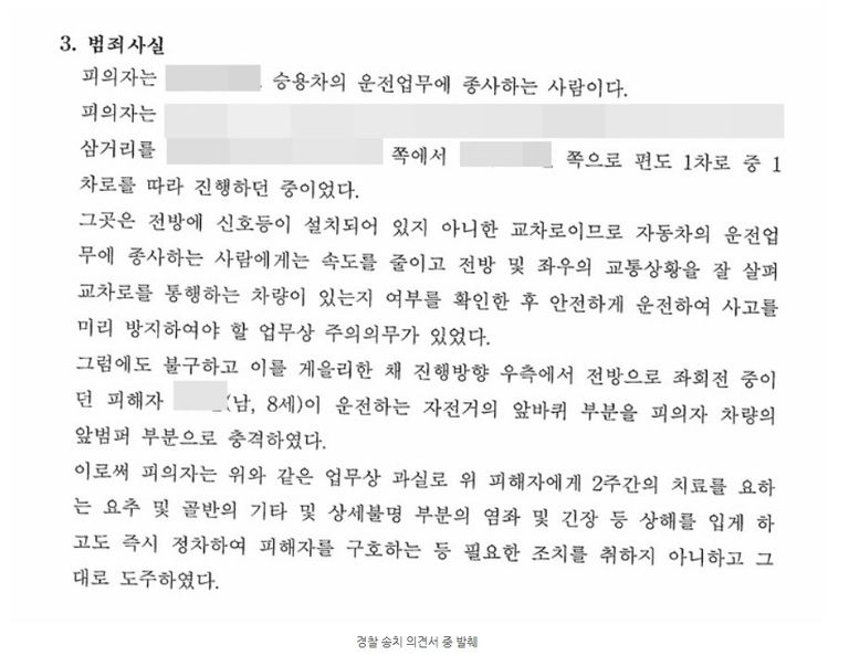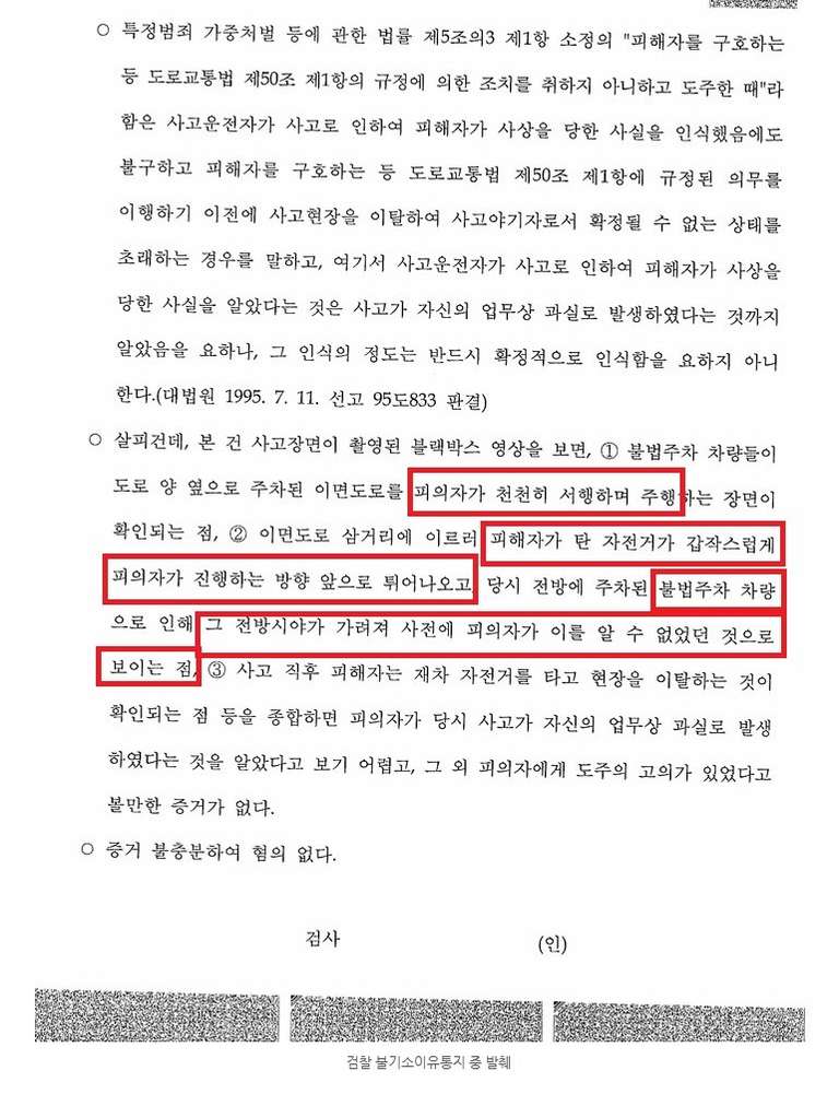 이번 포스팅의 내용은 제가 담당했던 사건 중 특정범죄가중처벌등에관한법률위반(도주치상), 소위 '뺑소니'로 조사를 받고 검찰에서 무혐의로 종결된 사안입니다.