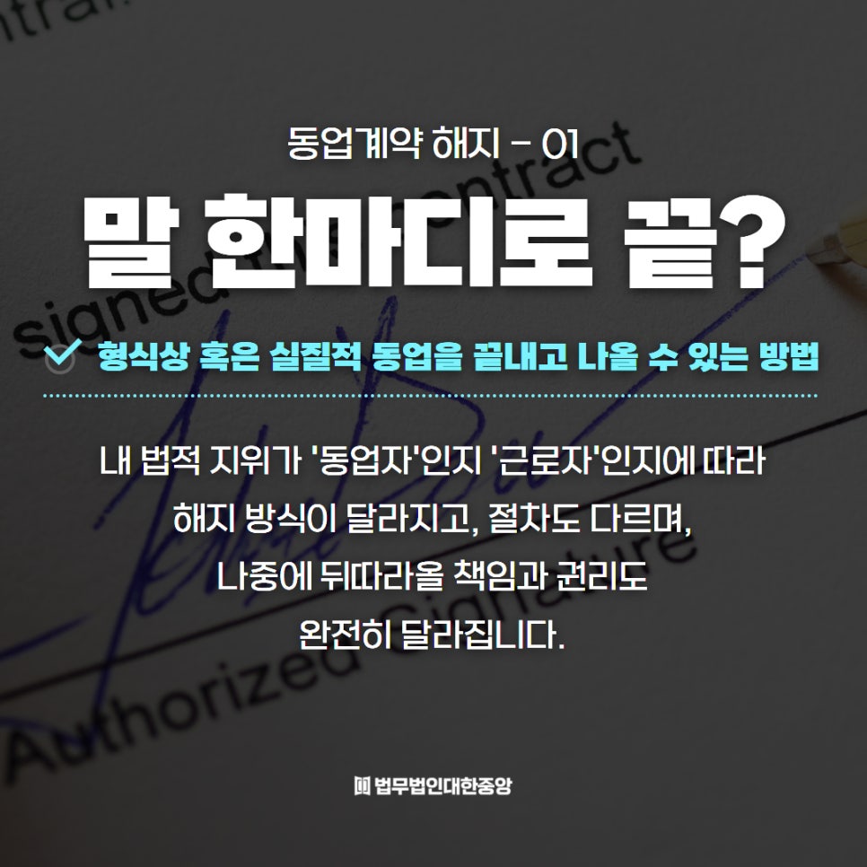 동업자였다면?(합의해지, 약정해지, 법정해지, 해지 후 정산 및 절차)