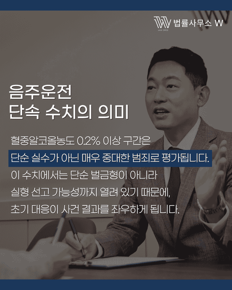 혈중알코올농도 0.2% 이상 사건은 초기 대응이 늦어지면 실형 위험이 급격히 커집니다. 단순히 초범이라는 이유로 방심해서는 안 됩니다.
