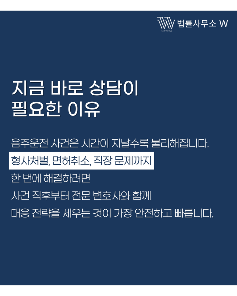 형사처벌뿐만 아니라 면허 취소, 직장 문제, 가족 생계까지 영향을 주는 사건이기 때문에 사건 초기부터 전략적으로 접근하는 것이 중요합니다.