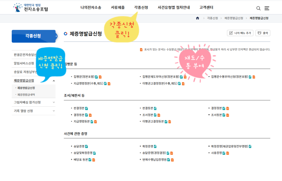 ☞ 전자소송 시스템으로 신청할 경우에도 약 1∼2일 내에 발급이 가능합니다.