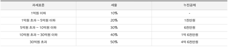 증여세율 구간 (2024년 기준)