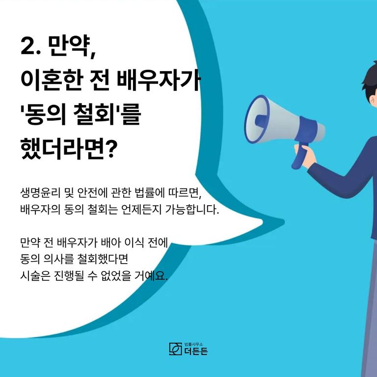 만약 전 배우자가 동의 철회 의사를 명확히 밝히지 않았거나, 철회 의사가 전달되지 않았다면 법적 분쟁의 소지가 남아 있게 됩니다. 이 경우, 동의 철회 여부가 법적 다툼의 중요한 쟁점이 될 수 있습니다.