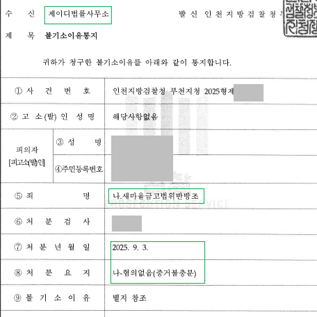 2025. 9. 3. 경찰에서 송치한 새마을금고법위반방조 2건에 대해 검찰에서 각각 혐의없음(증거불충분) 한 성공사례가 있어 이를 공유하고자 합니다.