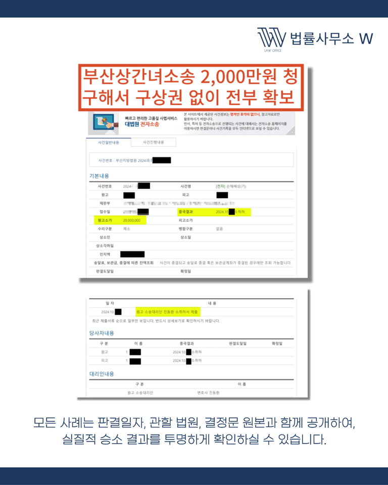 피고는 빠른 사건 종결을 원했기 때문에 합의금 2,000만 원과 구상권 배제 조항에 모두 동의했습니다. 입금 확인 후 소송은 종결되었고, 의뢰인은 원하던 금액을 온전히 확보할 수 있었습니다.