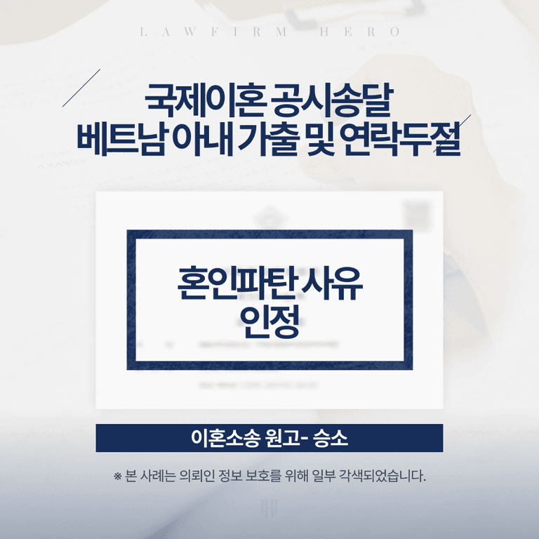 이번 사건에서도 상대방이 해외로 나가버리면서 의뢰인은 혼인관계에 묶인 채 생활을 이어가야 했습니다.